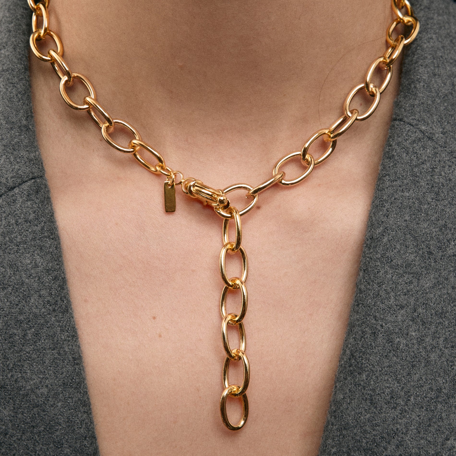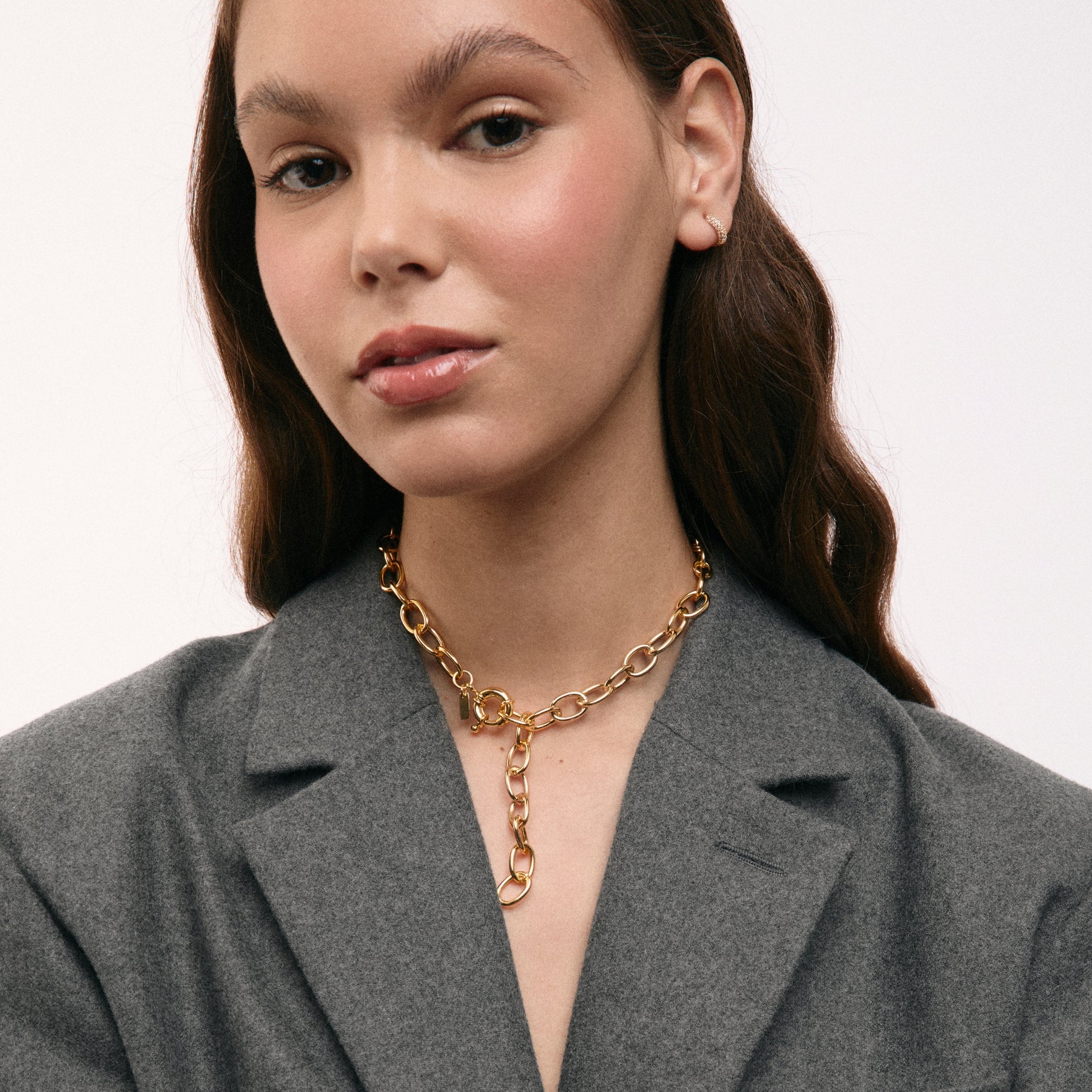 Un collar con eslabones gruesos y glossy, imponente en tus looks que te brindará una onda 90s muy cool.