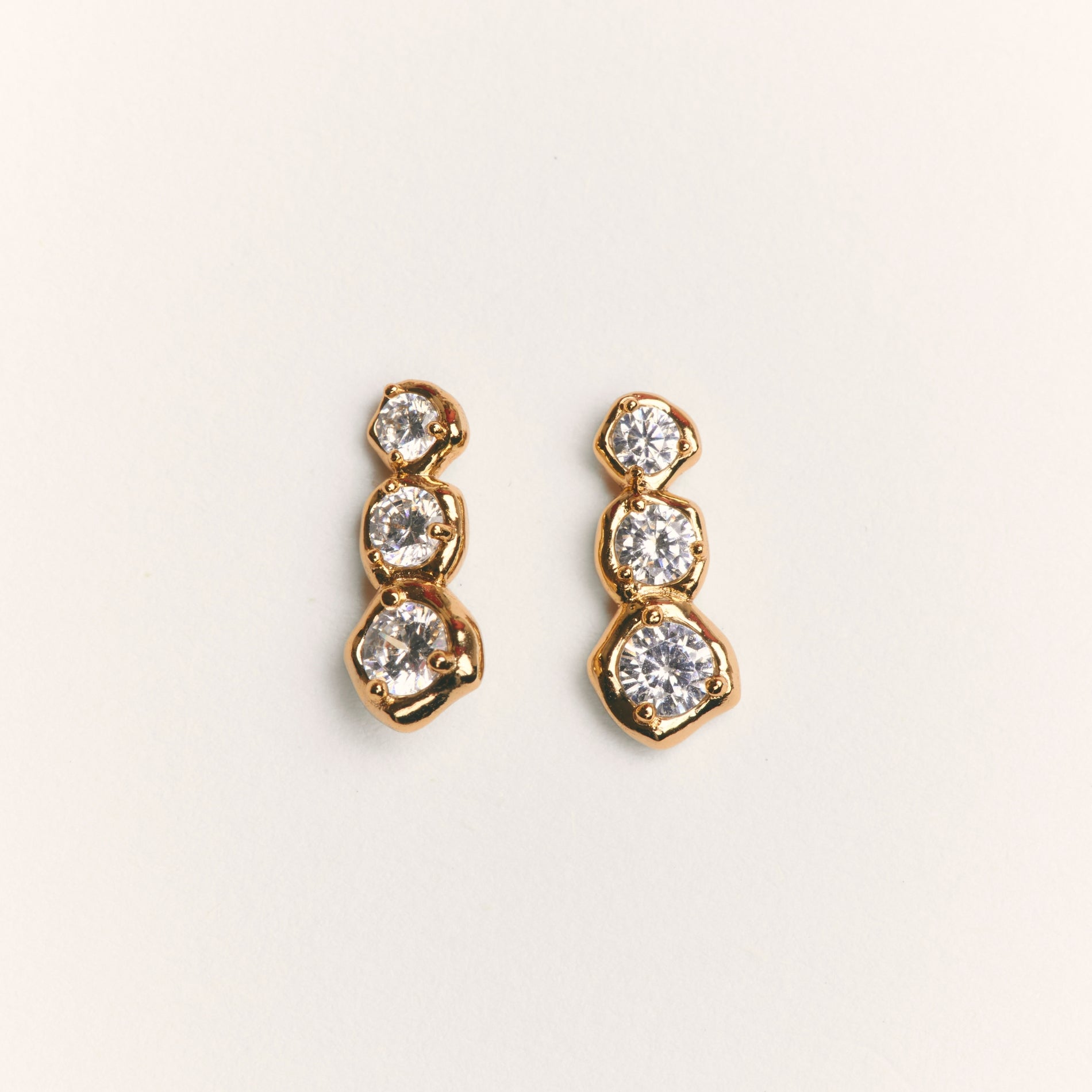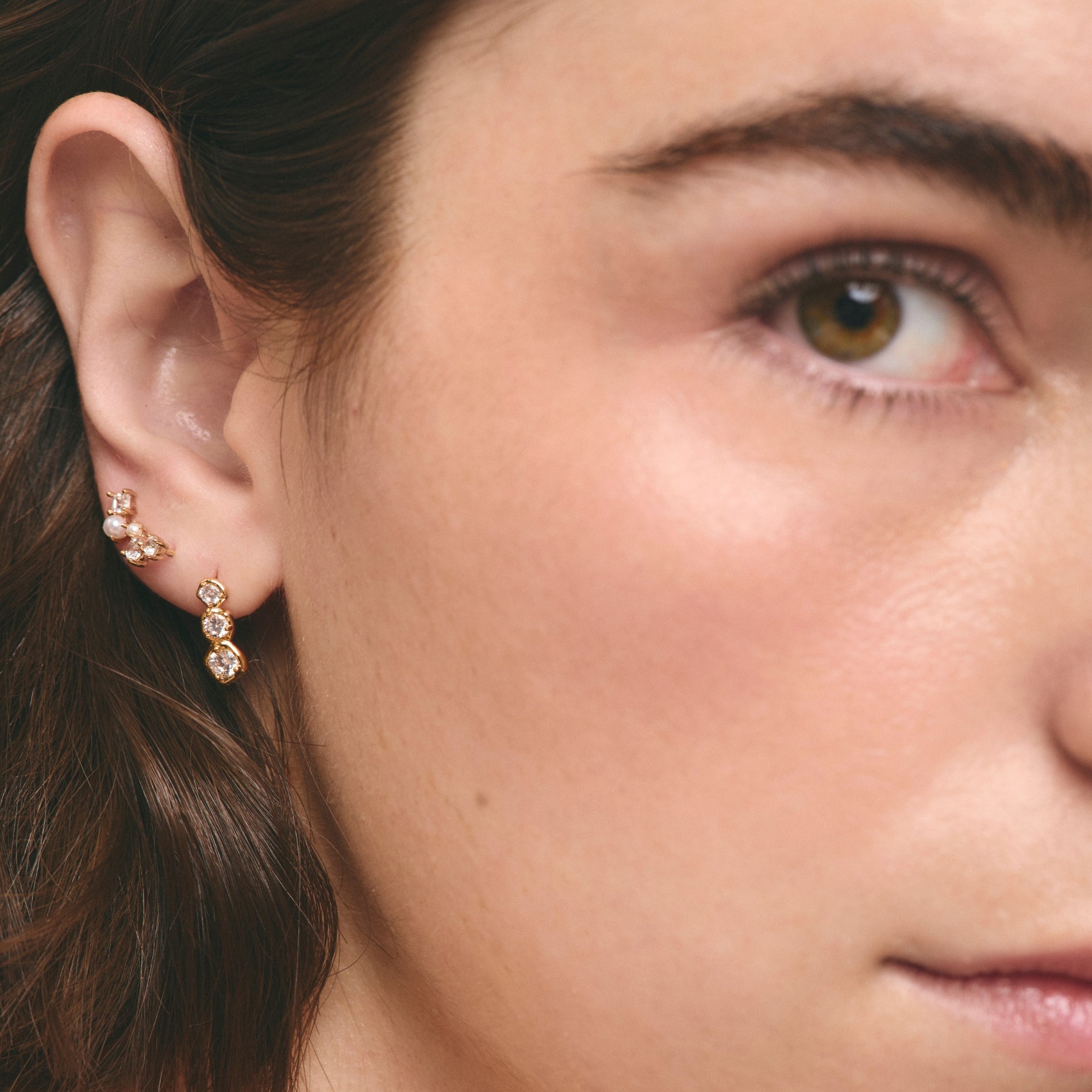 El resultado: un arete compacto pero de impacto, que captura la luz desde todos los ángulos. Es de esos aretes que te sorprenden frente al espejo… y se convierten en favoritos inmediatos