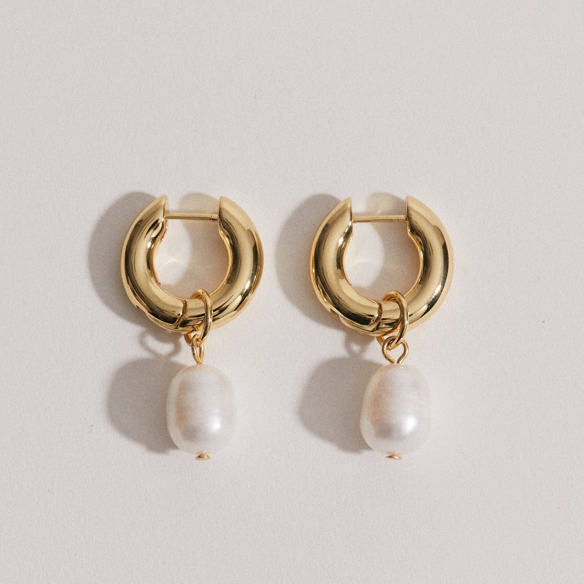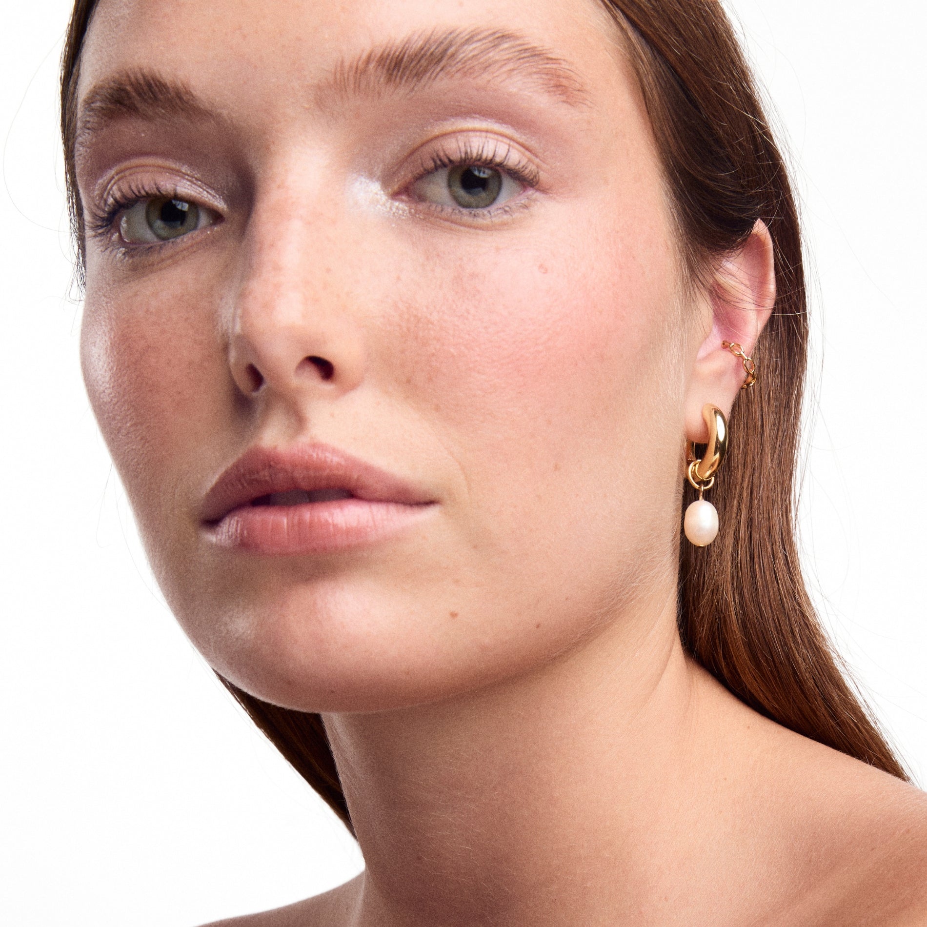 Nuestro best seller! La argolla olivia perla es muy versátil  y una pieza atemporal que no puede faltar en tus accesorios. Puedes usarla con o sin el dije de perla y combinarla con collares chunky o delicados.