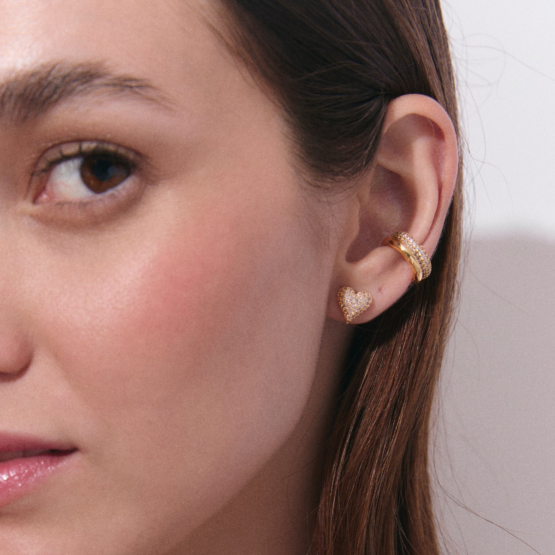 MATERIAL: Bronce. ACABADO: Baño oro 18k con sellado e-coating y cristales pavé.