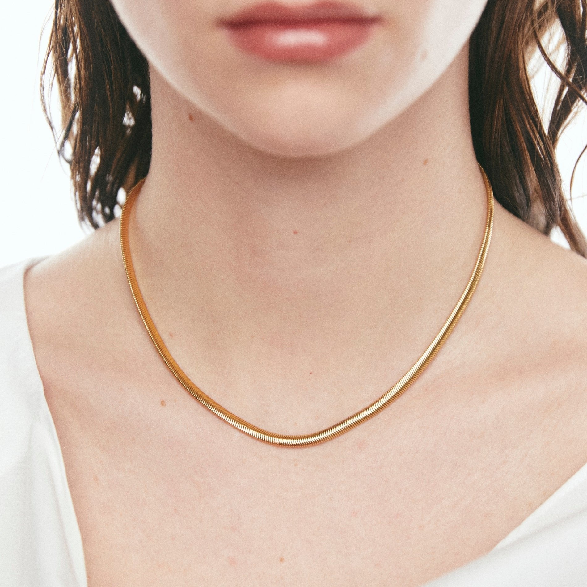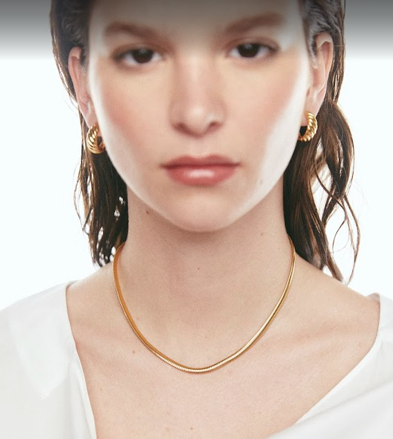 El set que no te debe faltar para tus looks del día a día. La Argolla Chloe tiene un tamaño ideal ya que apezar de ser pequeño tiene una gran presencia por su particular forma y textura. La cadena es Leah con su estilo clasico snake , busca elevar to look para darle elegancia y delicadeza.